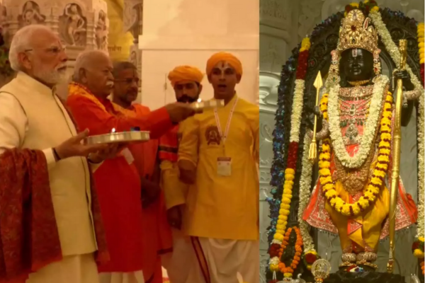 அயோத்யா ராமர் கோயிலில் பிரதமர் மோடி சிறப்பு வழிபாடு – 191 அடி உயரத்தில் கொடி ஏற்றம்
