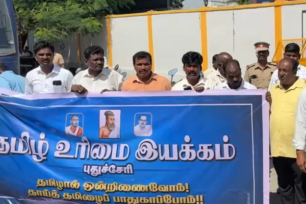 புதுச்சேரியில் புதிதாக இயக்கப்பட்ட மினி மின்சார பேருந்துகளில் ஆங்கிலத்தில் எழுதப்பட்டுள்ள பெயர்கள் மற்றும் பாதை விவரங்களை அகற்ற வேண்டும் என தமிழ் உரிமை இயக்கம் சார்பில் நடத்தப்பட்ட போராட்டத்தின் போது பரபரப்பு நிலவியது. பொதுமக்கள் பயன்பாட்டிற்காக புதுச்சேரி சாலை போக்குவரத்து கழகம் 25 மின்சார மினி பேருந்துகளை தனியாரிடம் ஒப்படைத்து கடந்த மாதம் முதல் இயக்கி வருகிறது. ஆனால், இந்தப் பேருந்துகளில் தமிழ் மொழி பயன்படுத்தப்படாமல் ஆங்கிலத்தில் மட்டுமே பாதைத் தகவல்கள் மற்றும் பேருந்துப் பெயர்கள் எழுதப்பட்டிருந்தது….