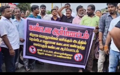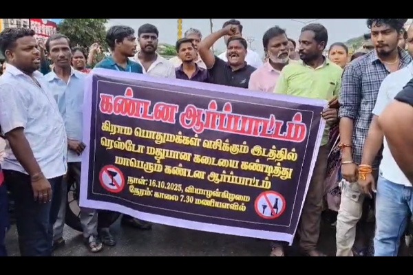 மதுவால் இளைஞர்கள், குடும்பங்கள், சமூக அமைதி ஆகியவை பாதிக்கப்படும் எனக் கூறி நூற்றுக்கணக்கான மக்கள் ஒன்றிணைந்து சாலை மறியல் செய்து கடும் ஆர்ப்பாட்டம் நடத்தினர்.